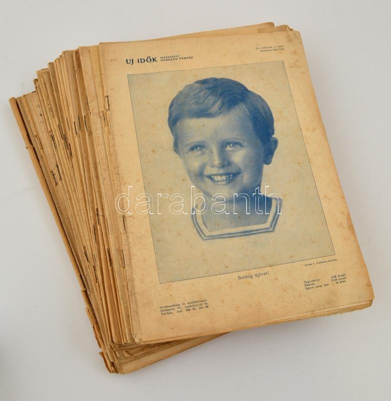 1934 Uj Idők. Szerk.: Herczeg Ferenc, XL. évf. nem teljes évfolyam, hiányoznak: 2.,3.,7.,8.,12.,13.,15.,20.,24.,34., 36.,38.,43.,45.,51. számok, kissé viseltes állapotban.
