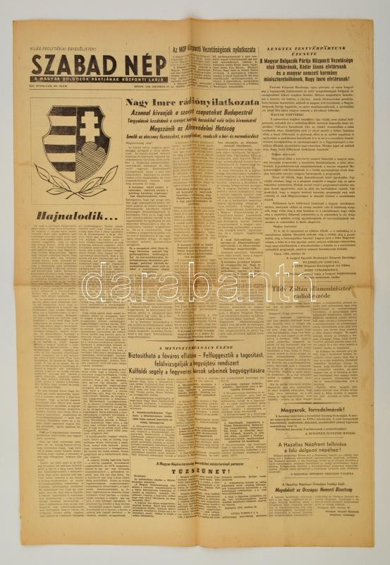 1956 A Szabad Nép, a Magyar Dolgozók Pártjának Központi Lapja október ... https://www.darabanth.com/hu/289-Gyorsarveres/289.0/Festmeny-mutargy-papirregiseg-egyeb/Nyomtatvanyok~28/1956-A-Szabad-Nep-a-Magyar-Dolgozok-Partjanak-Kozponti-Lapja-oktober-29-diki-szama-a-forrad~II1526827