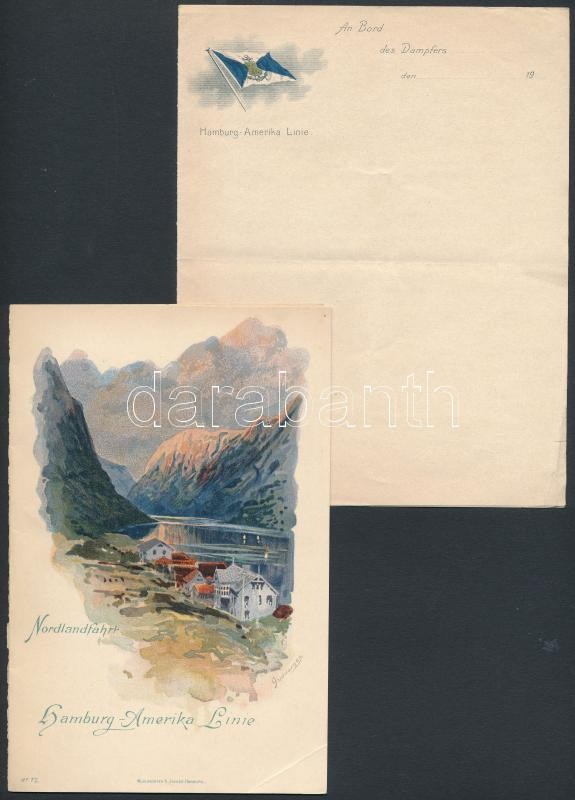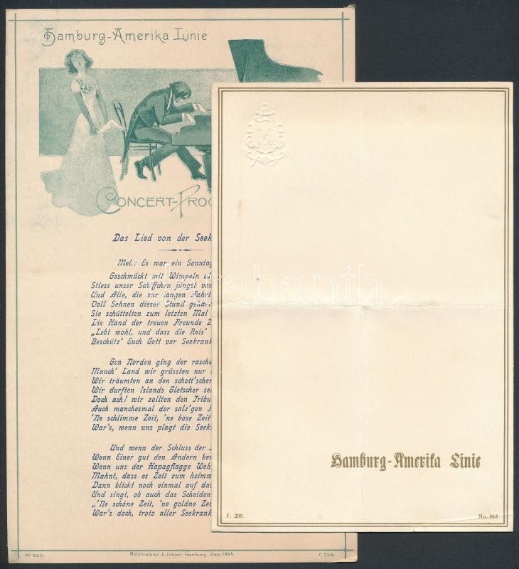 cca 1906 Hamburg-Amerika Linie hajózási társasággal kapcsolatos 4 db nyomtatvány: koncert program, menükártyák, tájékoztató füzet / Hamburg-Amerika Linie shipping company menu and music cards