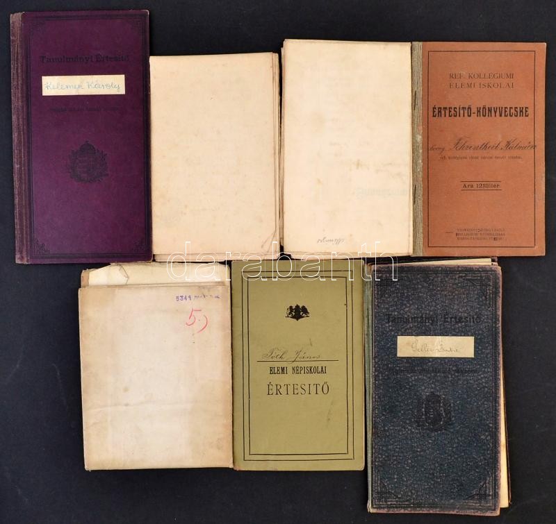 Leírás: Kis okmány tétel: iskolai értesítők, bizonyítványok, stb.