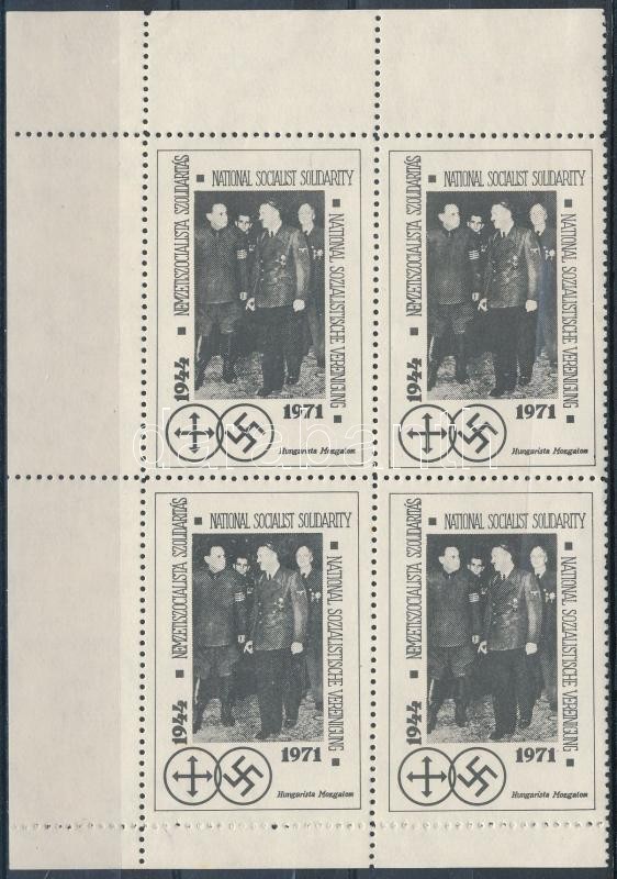 1971 Nemzetiszocialista szolidaritás Szálasi és Hitler ívsarki négyest... https://www.darabanth.com/hu/289-Gyorsarveres/289.0/Festmeny-mutargy-papirregiseg-egyeb/Parafilatelia~30/1971-Nemzetiszocialista-szolidaritas-Szalasi-es-Hitler-ivsarki-negyestomb~II1524023