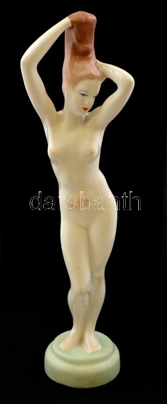 Leírás: Aquincumi porcelán fésülködő akt, kézzel festett, jelzett, hibátlan, m: 27,5 cm