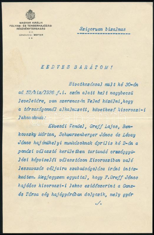 1936 MFTRT elnökének levele ismeretlennek, melyben hozzájárul egyes do... https://www.darabanth.com/hu/289-Gyorsarveres/289.0/Festmeny-mutargy-papirregiseg-egyeb/Tortenelmi-dokumentumok-keziratok-erdekessegek~18/1936-MFTRT-elnokenek-levele-ismeretlennek-melyben-hozzajarul-egyes-dolgozok-szavazas-celjab~II1521276