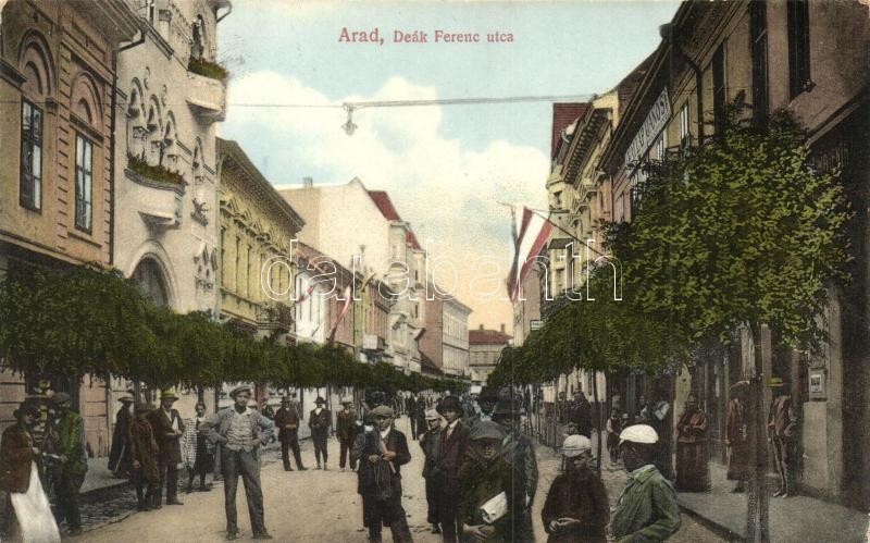 Arad, Deák Ferenc utca, üzletek, zászlók, Husserl kiadása / street, sh... https://www.darabanth.com/hu/289-Gyorsarveres/289.0/Kepeslapok/Erdely~400006/Arad-Deak-Ferenc-utca-uzletek-zaszlok-Husserl-kiadasa-street-shops-flags~II1523047