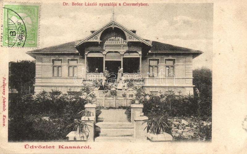Kassa, Kosice; Dr. Brósz László 'Kornélia' nyaralója a Csermelyben, Po... https://www.darabanth.com/hu/289-Gyorsarveres/289.0/Kepeslapok/Felvidek~400007/Kassa-Kosice-Dr-Brosz-Laszlo-Kornelia-nyaraloja-a-Csermelyben-Podleszny-felvetele-vill~II1522449