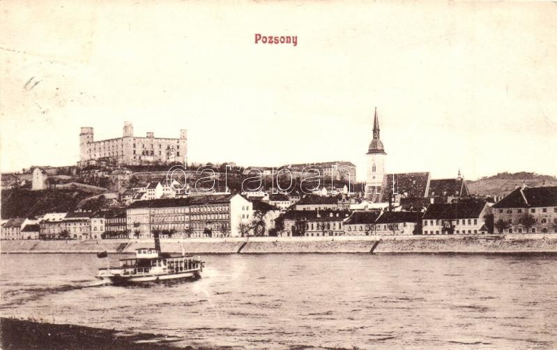 Pozsony, Bratislava, Pressburg; vár, gőzhajó / castle, steamship (EK) https://www.darabanth.com/hu/289-Gyorsarveres/289.0/Kepeslapok/Felvidek~400007/Pozsony-Bratislava-Pressburg-var-gozhajo-castle-steamship-EK~II1524748
