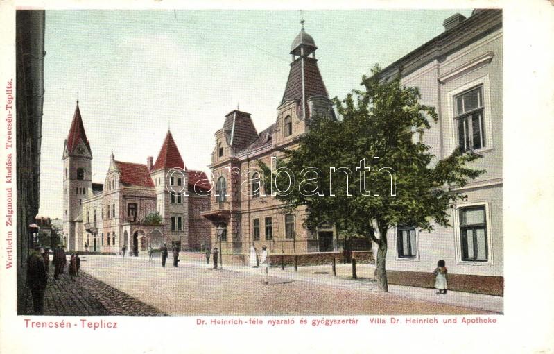 Trencsénteplic, Trencianske Teplice; Villa Dr. Heinrich und Apotheke / Dr. Heinrich-féle nyaraló és gyógyszertár, Wertheim Zsigmond kiadása / villa, pharmacy (EK)
