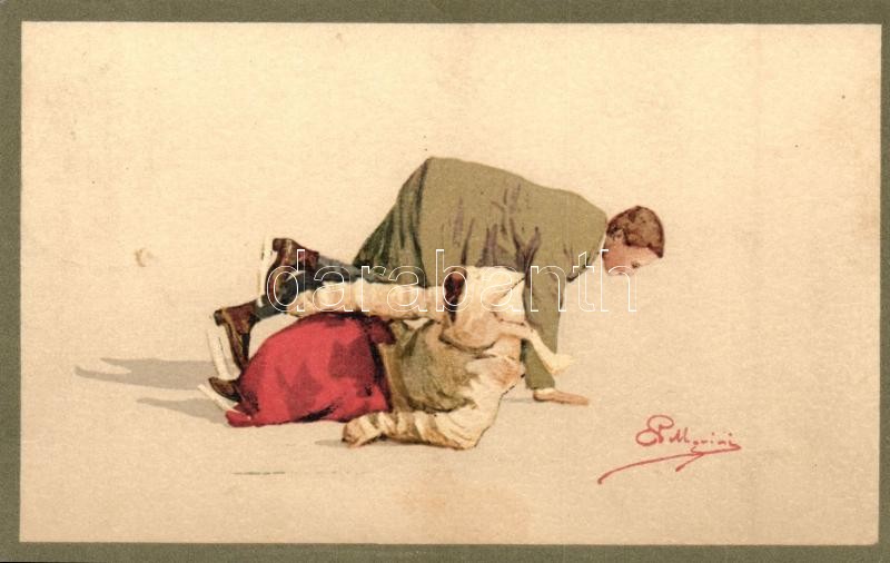 Leírás: Ice skating couple, humour, Vouga & Cie No. 311. litho s: Pellegrini