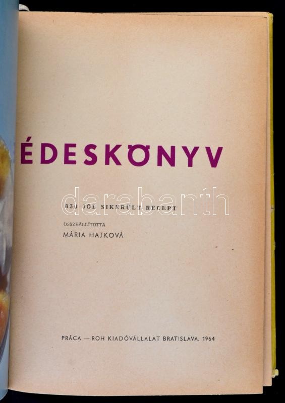 Mária Hajková: Édeskönyv. 830 jól sikerült recept. Fordították Schiller L. és Gy.Prága-Pozsony, 1964, ROH. Kiadói egészvászon-kötés, kiadói papírborítóban.