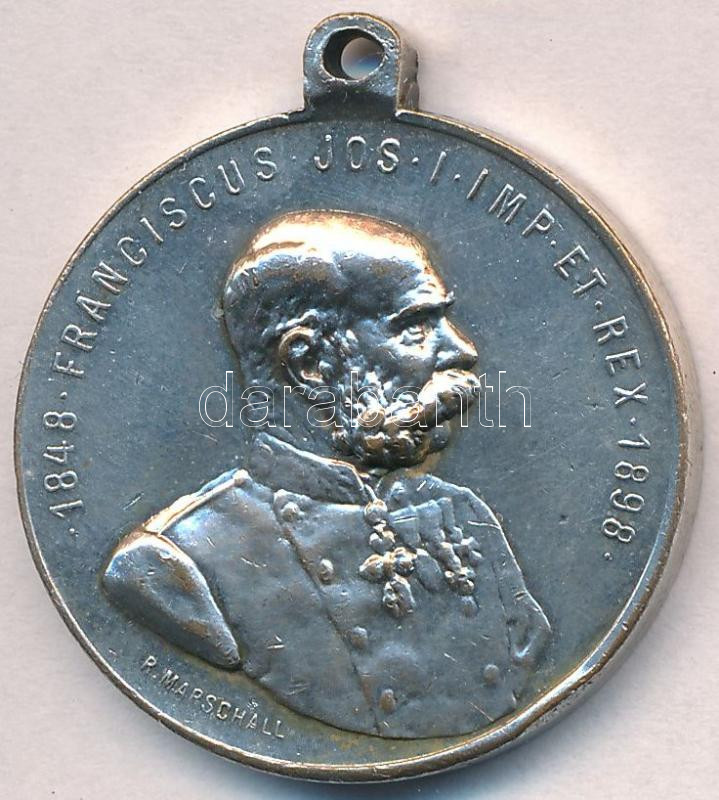 Ausztria 1898. "Ferenc József Jubielumi Emlékérem" ezüstözött Br emlékmedál füllel (29mm) Szign.: R. MARSCHALL T:2
