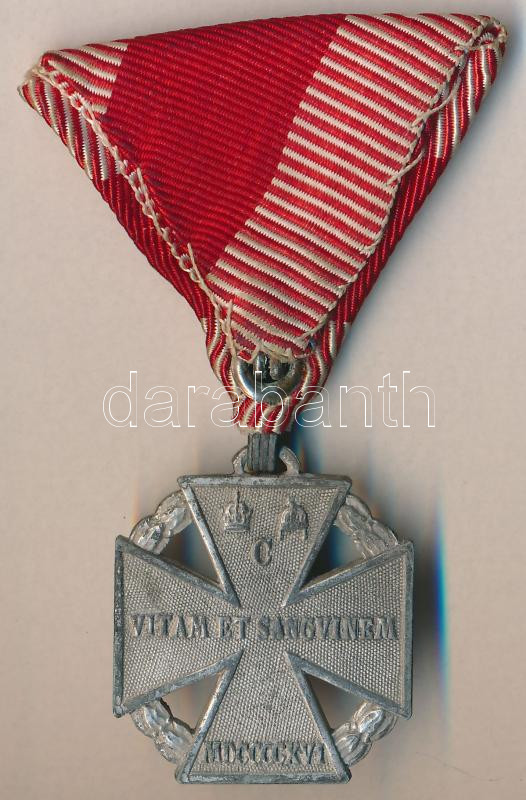 Hungary 1916. "Charles Troop Cross" Zn decoration with ribbon, with makers mark on edge C:XF