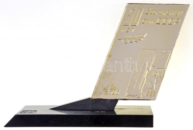 Szovjetunió 1968. "Fegyveres Erők 50. évfordulója" fém plakett műanyag talpon (plakett 84x55mm) T:2 talp enyhén sérült
