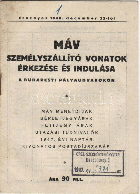 1946 MÁV személyszállító vonatok érkezése és indulása a budapesti pály... https://www.darabanth.com/hu/29-Gyorsarveres/29.0/Festmeny-mutargy-papirregiseg-egyeb/Nyomtatvanyok-Printed-papers~256/1946-MAV-szemelyszallito-vonatok-erkezese-es-indulasa-a-budapesti-palyaudvarokon~II39339