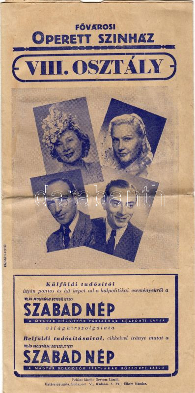 1950-es évek Operettszínház: VIII. osztály brossúra https://www.darabanth.com/hu/29-Gyorsarveres/29.0/Festmeny-mutargy-papirregiseg-egyeb/Nyomtatvanyok-Printed-papers~256/1950-es-evek-Operettszinhaz-VIII-osztaly-brossura~II42985