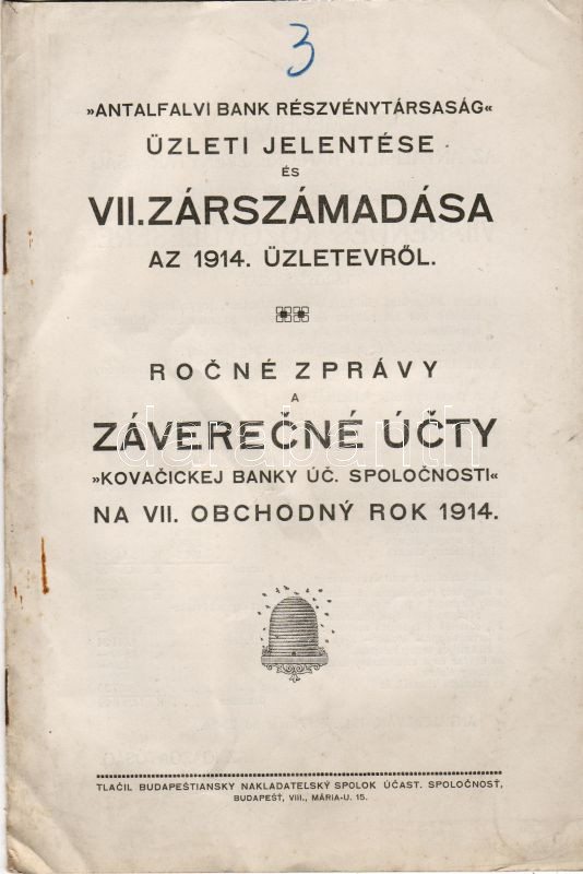 Antalfalvi Bank részvénytársaság zárszámadása 1914. szlovák és magyar ... https://www.darabanth.com/hu/29-Gyorsarveres/29.0/Festmeny-mutargy-papirregiseg-egyeb/Nyomtatvanyok-Printed-papers~256/Antalfalvi-Bank-reszvenytarsasag-zarszamadasa-1914-szlovak-es-magyar-nyelven~II32165