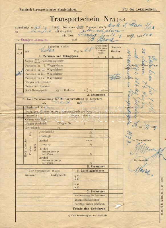 1909 Bosznia Hercegovinai Államvasút Szállítási jegyzék Szarajevó-Kass... https://www.darabanth.com/hu/29-Gyorsarveres/29.0/Festmeny-mutargy-papirregiseg-egyeb/Okmanyok-Documents~259/1909-Bosznia-Hercegovinai-Allamvasut-Szallitasi-jegyzek-Szarajevo-Kassa-utvonal~II53652