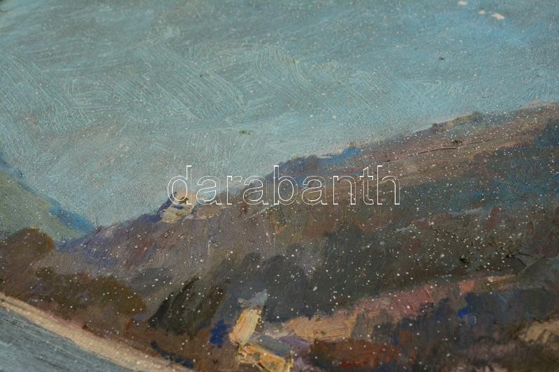 Leírás: Fejes Gyula (1895-1956): Visegrád. Olaj, vászon, jelzett, festék pöttyökkel, keretben, 50×60 cm