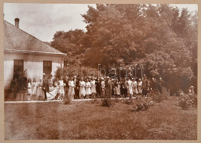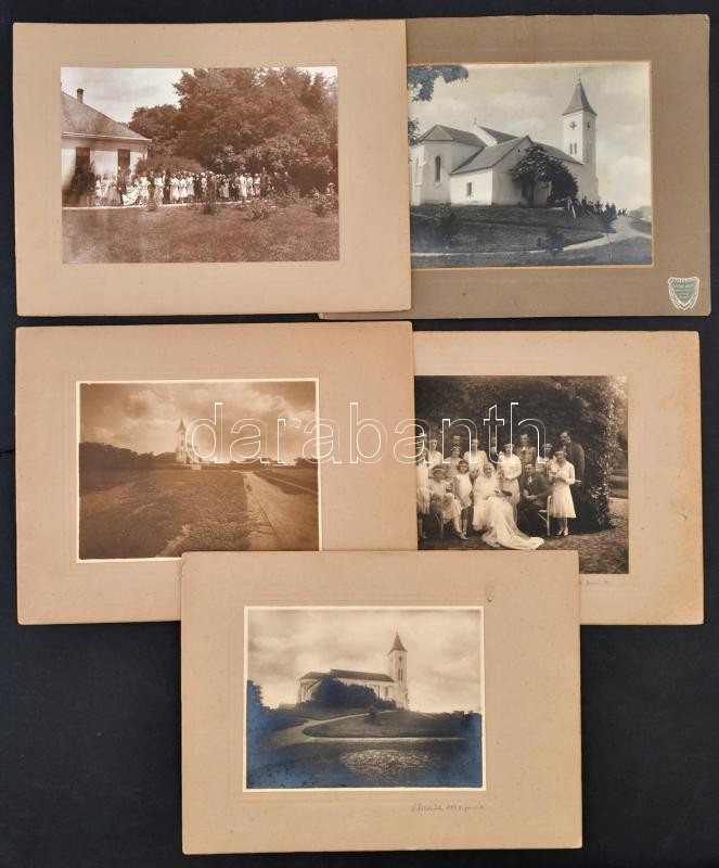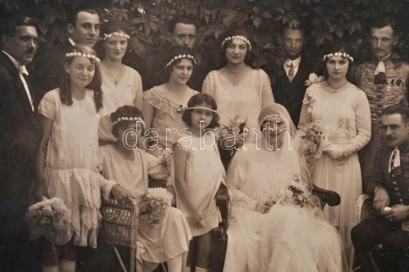 1929 Óföldeák, Návay János (1901-1954) és Haász Zsuzsanna (1912-?) esküvője, 5 db fotó kartonra ragasztva, Szenes Koller utóda budapesti illetve Bucskó Gyula makói műterméből, 15×19,5 cm