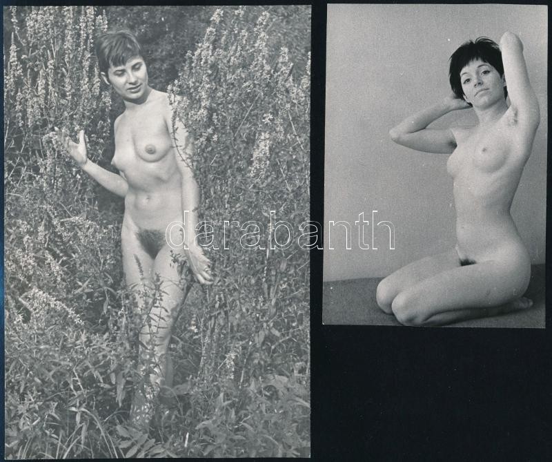 cca 1972 Modellekkel intimben, szolidan erotikus felvételek, 4 db vintage fotó + 3 db vintage negatív (a pozitív és a negatív képek nem összetartozók), 24x18 cm és 6x6 cm között