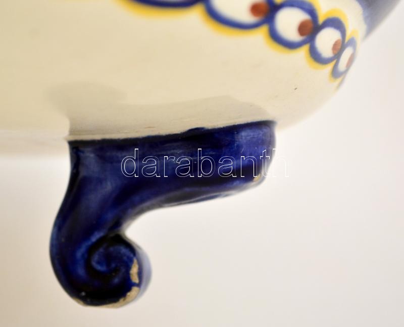 Leírás: Borszéky Frigyes (1880-1955): Szecessziós hattyús tál, kézzel festett mázas keámia, nagyon apró máz hibákkal, m: 9 cm, d: 26 cm