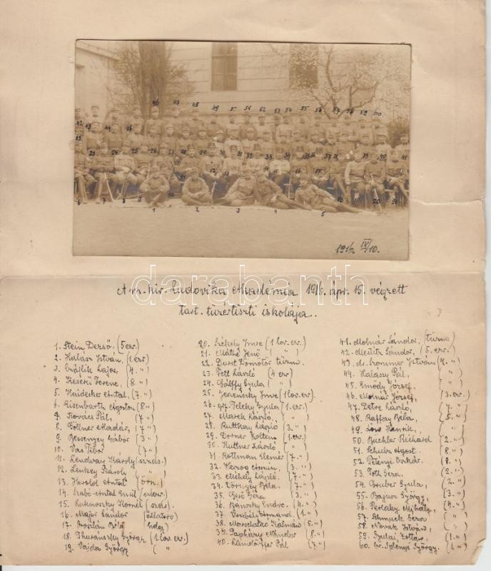 1916 A M. kir. Ludovika Akadémia tart. tüzértiszti iskolájának végzőse... https://www.darabanth.com/hu/29-Nagyaukcio/29.1/Festmeny-mutargy-papirregiseg-egyeb/Militaria~11792/1916-A-M-kir-Ludovika-Akademia-tart-tuzertiszti-iskolajanak-vegzosei-csoportkepen-egyenk~II1777773