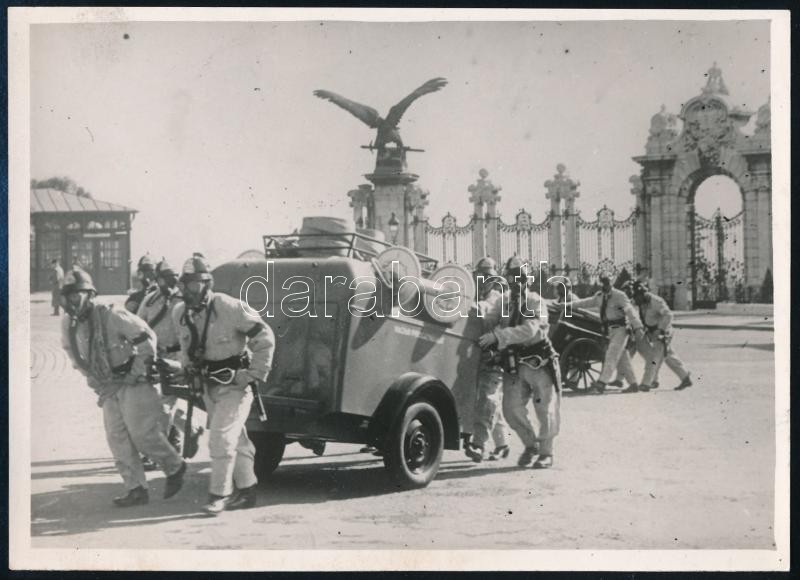 1938 Budapest, Légelhárító csapatok készültségben a várban az első bécsi döntés idején, Fulgur Photo Paris, hátoldalűán pecséttel jelezve, feliratozva, 13x18 cm / 1938, Budapest, antiaircraft troops at the castle, 13x18 cm