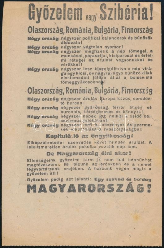 cca 1944-1945 "Győzelem vagy Szibéria" - kapituláció ellenes katonai p... https://www.darabanth.com/hu/29-Nagyaukcio/29.1/Festmeny-mutargy-papirregiseg-egyeb/Militaria~11792/cca-1944-1945-Gyozelem-vagy-Sziberia-kapitulacio-ellenes-katonai-propaganda-roplap-ket-ol~II1774501