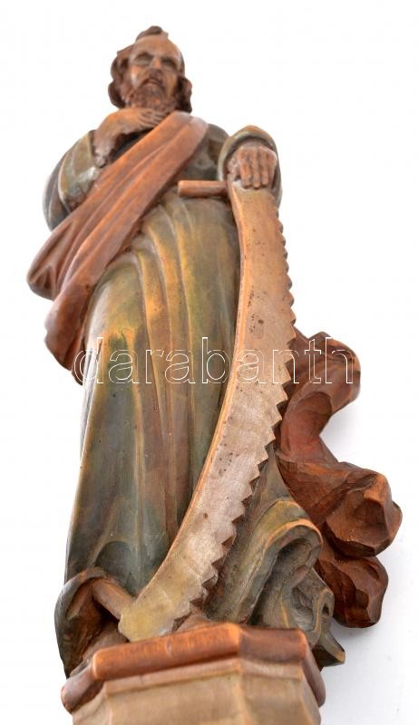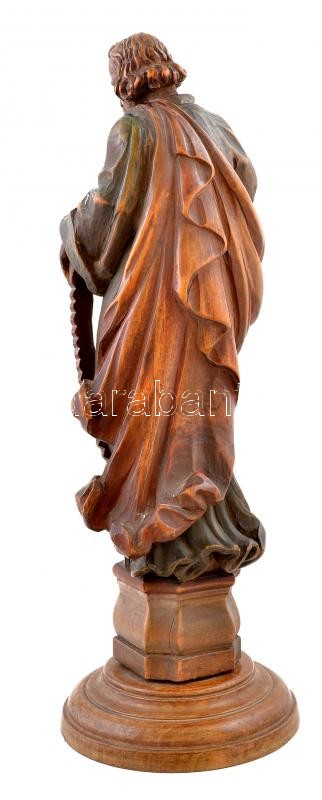 Leírás: XIX. sz.: Szent József faragott fa szobor talapzaton. / Saint Joseph carved wooden statue 45 cm