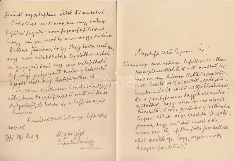 1893 VÉDETT! gróf Tisza Kálmán (1830-1902) saját kézzel írt levele Szél Kálmán református esperesnek (1838-1928) református egyház ügyeiben. Négy beírt oldal.