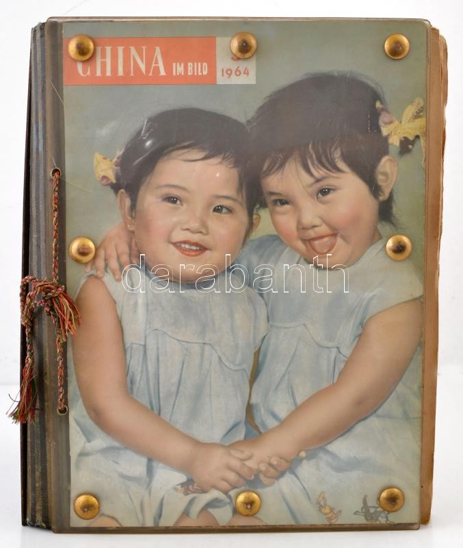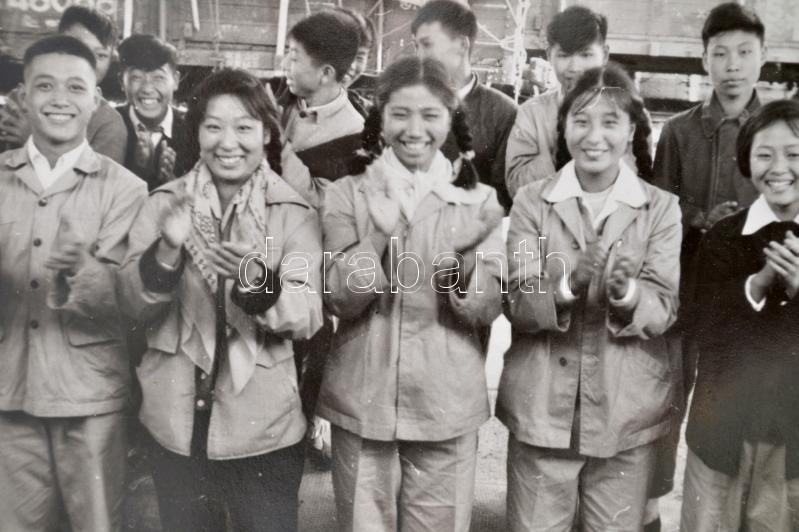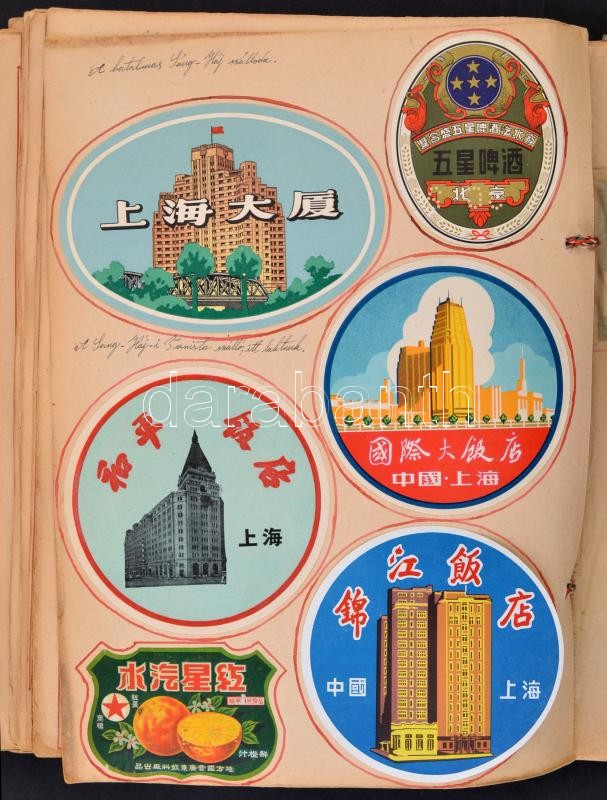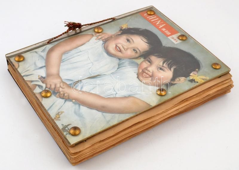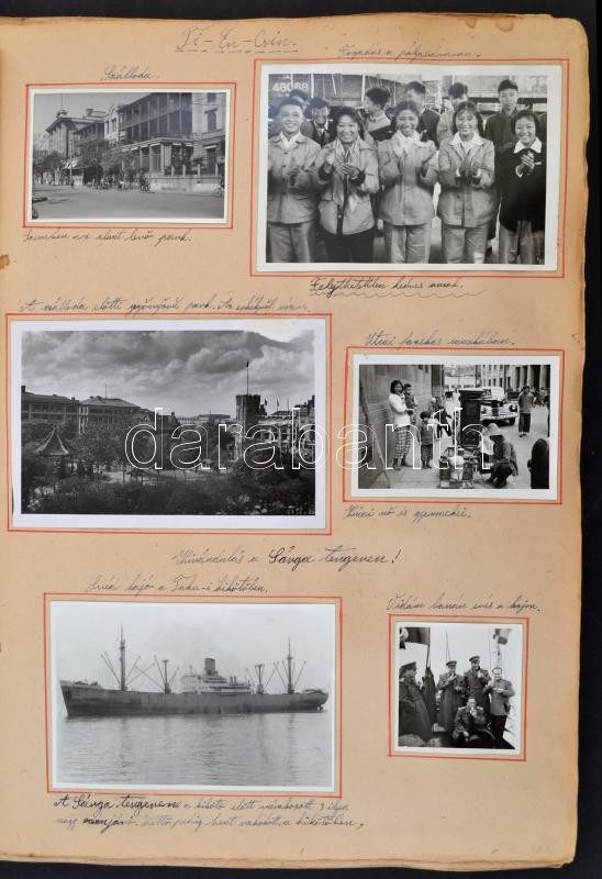 1956 Dobos István magyar katonazenészként Kínában tett látogatásáról készített emlékalbum eredeti fényképekkel, képeslapokkal, címkékkel, stb., 72 db A3-as lap