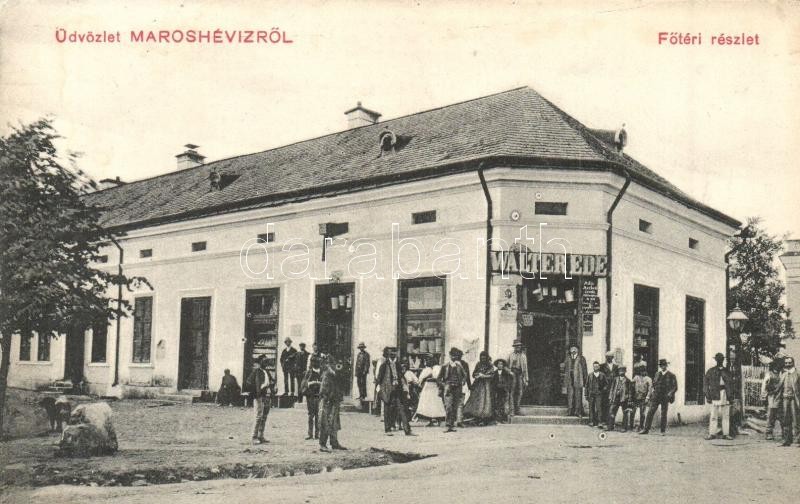 Leírás: Maroshévíz, Oláhtoplica, Toplita, Töplitz; Fő tér, Walter Ede üzlete és saját kiadása / main square with shop