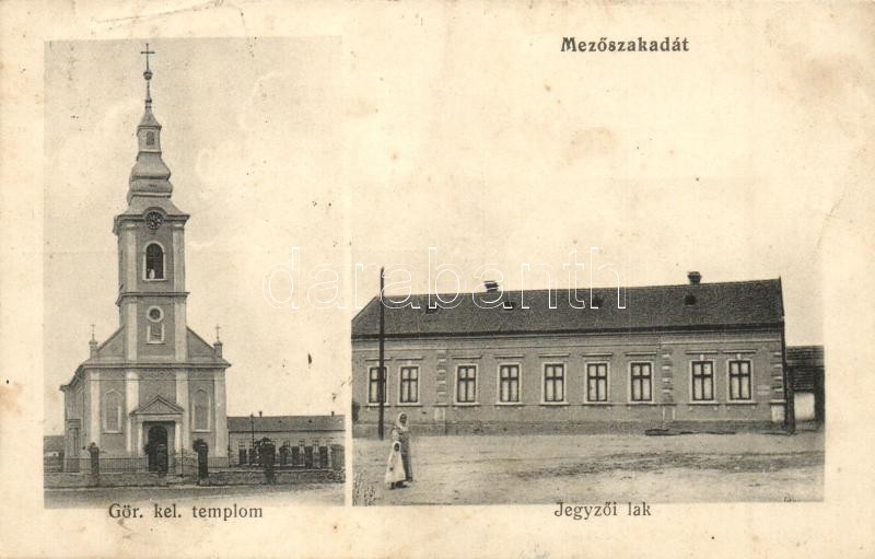 Mezőszakadát, Sacadat; Görög keleti templom, jegyzői lak / church, not... https://www.darabanth.com/hu/29-Nagyaukcio/29.1/Kepeslapok/Erdely~11798/Mezoszakadat-Sacadat-Gorog-keleti-templom-jegyzoi-lak-church-notarys-home~II1755253