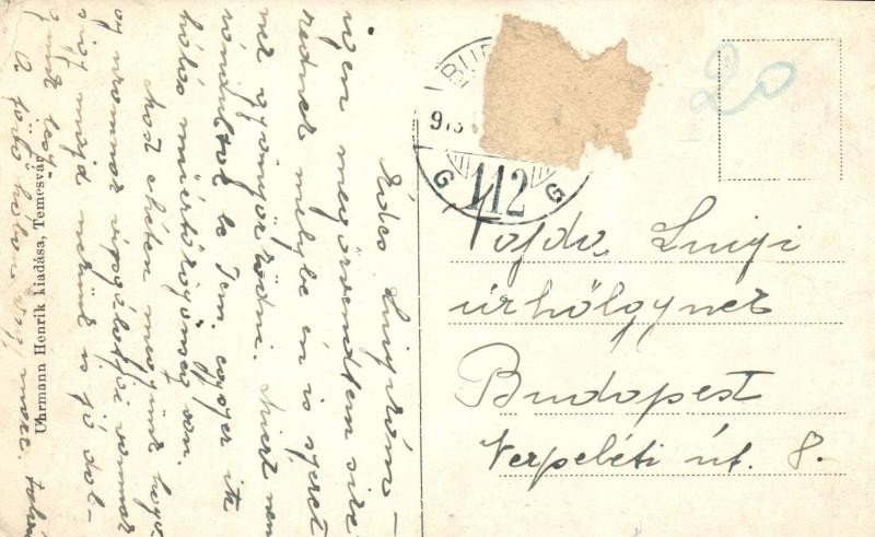Temesvár, Timisoara; Belváros, Lloyd Palota és Kávéház, Reisz Alfréd üzlete, villamos, útépítés / downtown, palace and cafe, shop, street view with construction and tram (Rb)