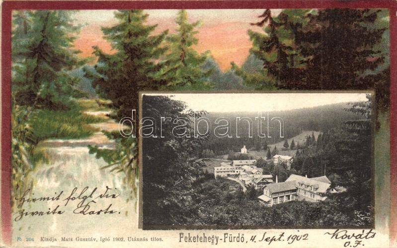 Leírás: Feketehegy-fürdő, Merény, Nálepkovo; Tájképes litho keret. Kiadja Matz Gusztáv 1902. / landscape litho frame