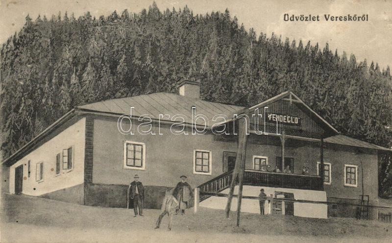 Leírás: Vereskő, Cervena Skala; Vendéglő. Kiadja Kiszely János / restaurant (apró lyuk / tiny pinhole)