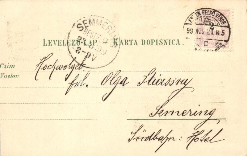 Leírás: 1899 Eszék, Osijek, Esseg; iskola, Pénzügyigazgatóság, Kereskedelmi kamara / school, Financial Directorate, Chamber of Commerce. Art Nouveau, floral, litho. O. Knittel No. 1587.