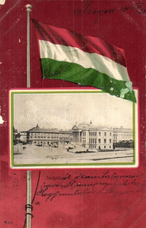 Leírás: 1902 Szeged, Kultúrpalota. Magyar zászlós litho keret / Hungarian flag litho frame (EK)