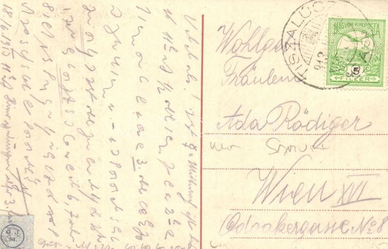 Leírás: 1913 Miskolc, Széchenyi utca, Képeslap Király üzlet, Szappanosok Szövetkezete, Klein Sámuel ékszerész, Róth Ármin utóda (EK)