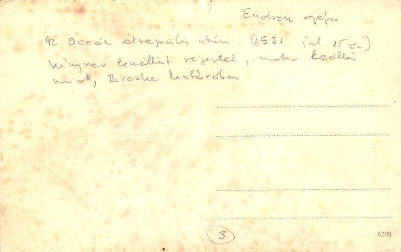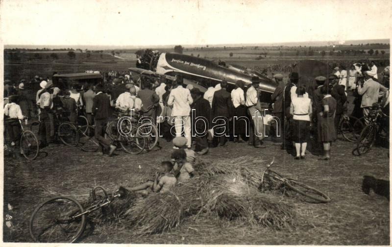 1931 Bicske, Endresz György és Wilczek Sándor Amerikai-Magyar atlanti óceán átrepülése közben gépleállás miatt végrehajtott kényszerleszállás a város határában, Justice for Hungary repülőgép, photo (fl)