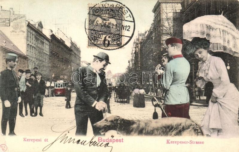 Leírás: Budapest VII. Kerepesi út, Lakos Lajos gyárraktára. Montázslap agárral / montage postcard, TCV card (EK)