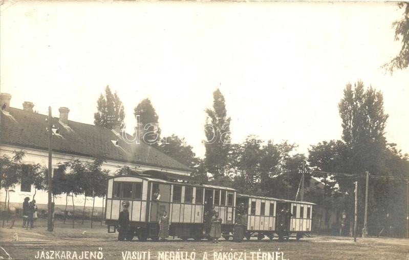 Jászkarajenő, Rákóczi téri vasúti megálló a kisvasúttal, photo (EK) https://www.darabanth.com/hu/29-Nagyaukcio/29.1/Kepeslapok/Magyarorszag~11796/Jaszkarajeno-Rakoczi-teri-vasuti-megallo-a-kisvasuttal-photo-EK~II1775292