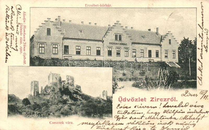 Leírás: Zirc, Erzsébet kórház, Csesznek vára. Mandausz János kiadása