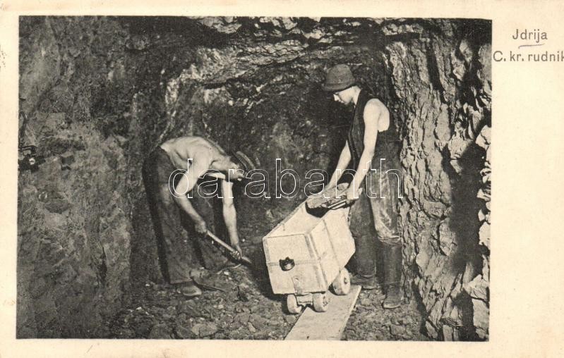 Idrija, C.kr. rudnik / mine interior with miners and mine cart https://www.darabanth.com/hu/29-Nagyaukcio/29.1/Kepeslapok/Szlovenia~11844/Idrija-Ckr-rudnik-mine-interior-with-miners-and-mine-cart~II1770639