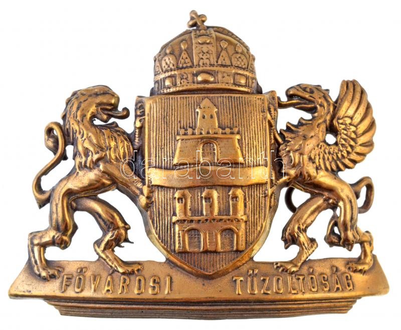 ~1930. "Fővárosi Tűzoltóság" fém sisakjelvény (88x70mm) T:2 /