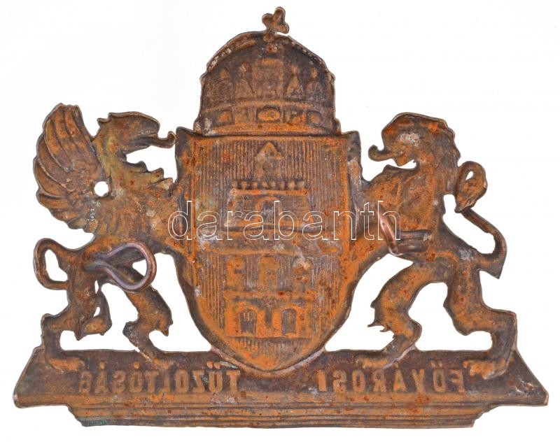 Hungar... https://www.darabanth.com/hu/29-Nagyaukcio/29.1/Numizmatika/Falerisztika-Kituntetesek-jelvenyek~11889/7E1930-Fovarosi-Tuzoltosag-fem-sisakjelveny-88x70mm-T2--Hungary-7E1930-Budapest-firef~II1773859