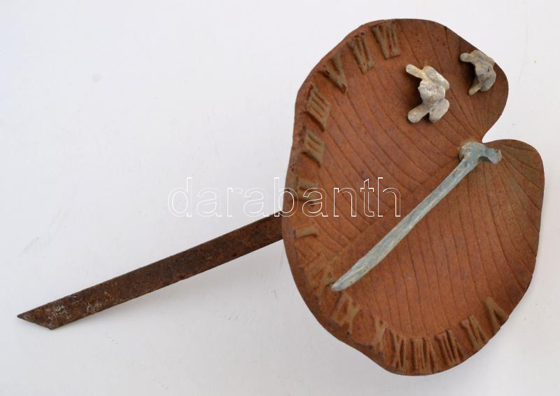 Leírás: Békás leszúrható napóra, fém, rozsdás, m: 30 cm