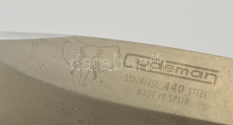 Leírás: Cudeman spanyol vadásztőr eredeti bőr tokjában, jelzett, pengehossz: 8,5 cm teljes hossz: 19 cm