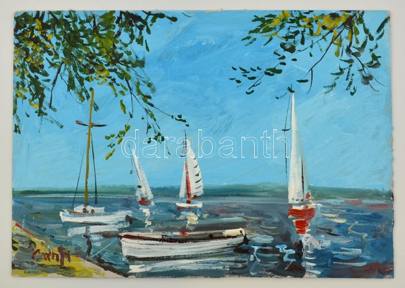 Bánfi jelzéssel: Vitorlások. Olaj, karton, 23×33 cm https://www.darabanth.com/hu/290-Gyorsarveres/290.0/Festmeny-mutargy-papirregiseg-egyeb/Festmenyek-es-grafikak~300103/Banfi-jelzessel-Vitorlasok-Olaj-karton-23C39733-cm~II1531510