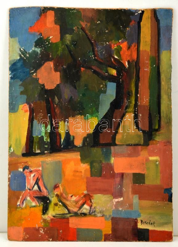 Benedek jelzéssel: Napozók. olaj, farost, festék hibákkal, 60×40 cm https://www.darabanth.com/hu/290-Gyorsarveres/290.0/Festmeny-mutargy-papirregiseg-egyeb/Festmenyek-es-grafikak~300103/Benedek-jelzessel-Napozok-olaj-farost-festek-hibakkal-60C39740-cm~II1531079