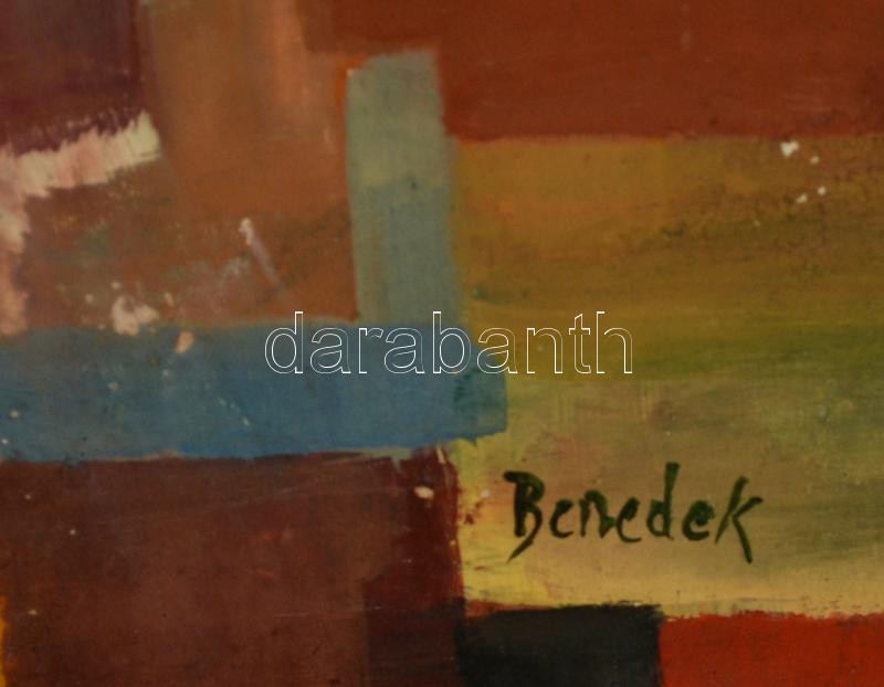 Leírás: Benedek jelzéssel: Napozók. olaj, farost, festék hibákkal, 60×40 cm
